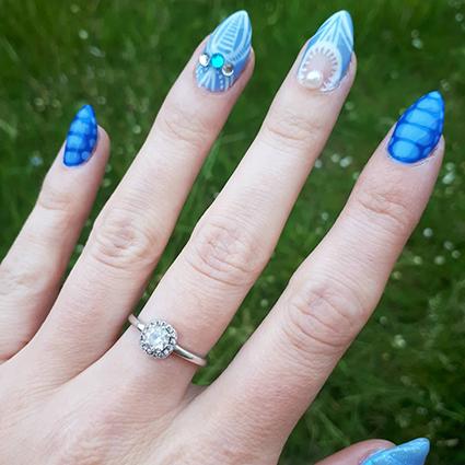 Эксперты уверены: времена, когда свадебный маникюр подразумевал исключительно бежевые тона, прошли. Этим летом невестам предлагают включить фантазию и сделать маникюр в голубых тонах.