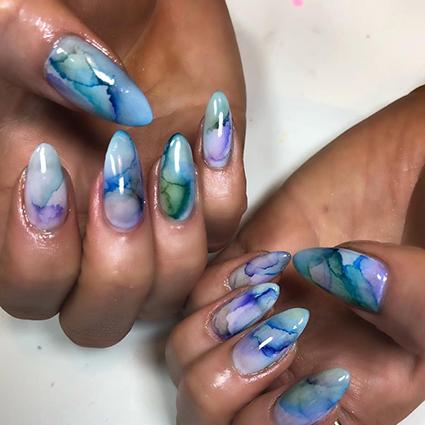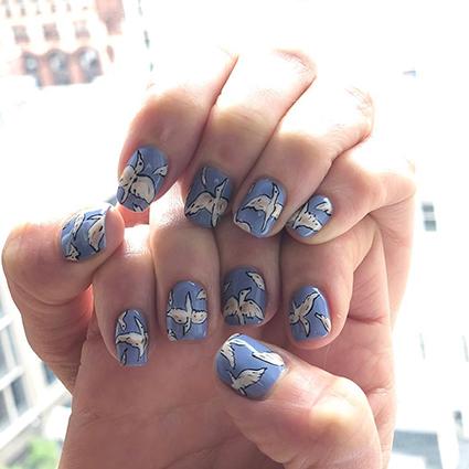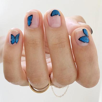 В тренде как пудровые, пастельные, так и сочные цвета. Самый модный оттенок этим летом — небесно-голубой, его лучше комбинировать с прозрачными лаками, делая так называемый маникюр negative space. Рисунок может быть любым: от невнятных абстракций, лишенных всякого смысла, до бабочек и птиц.