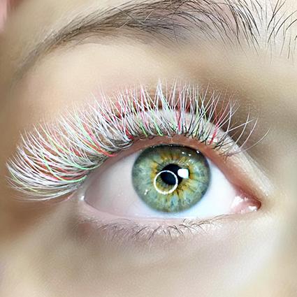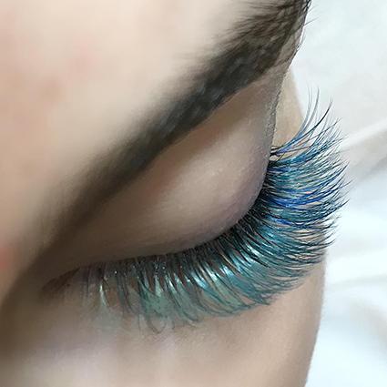 — двухцветное (используются черные ресницы, кончики которых окрашены в яркие цвета): при обычном освещении такое наращивание выглядит натурально, а при ярком солнечном ресницы начинают эффектно переливаться;