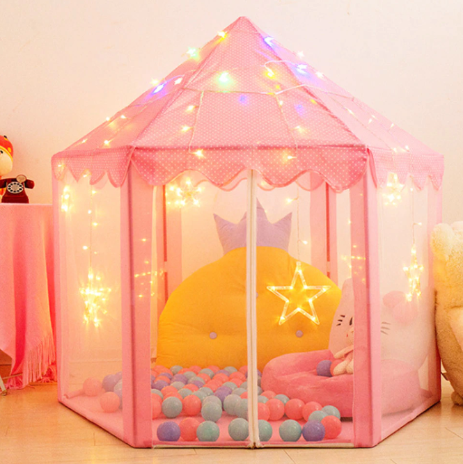 - Игровой домик — дети обожают прятаться. Домик или палатка станут укрытием для малышки. К тому же такой предмет надолго останется актуальным.