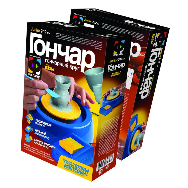 • Набор для изготовления​​ гончарных изделий. В таком необычном комплекте есть все необходимые инструменты для создания самого настоящего глиняного кувшина или другой посуды: глина, гончарный круг, краски.