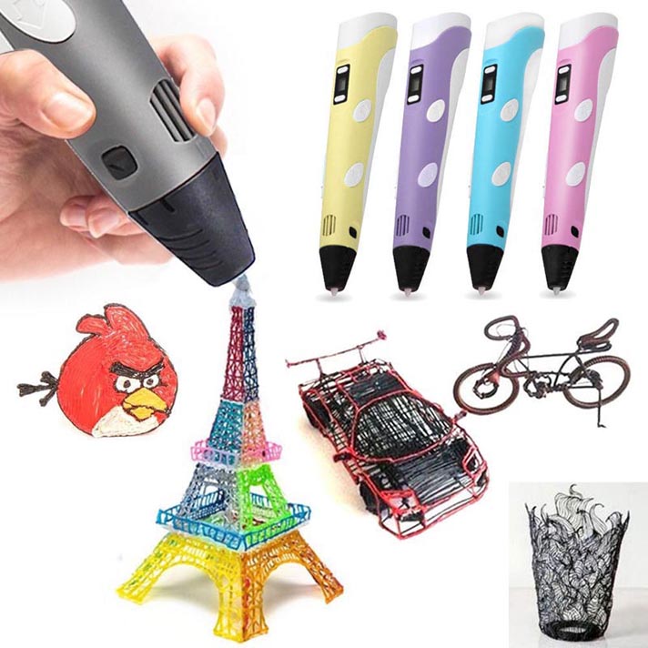 • 3D-ручка. Очень необычное и полезное устройство для творчества. С его помощью можно создавать различные надписи, объемные рисунки. Вместе с 3D-ручкой можно приобрести набор разноцветного пластика в качестве расходного материала.