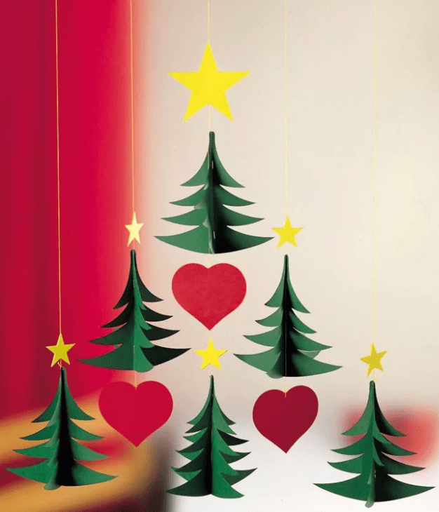 Можно просто по шаблону вырезать из бумаги разные фигурки – елочки, звездочки, снежинки, снеговиков, а после приклеить их на веревочку.