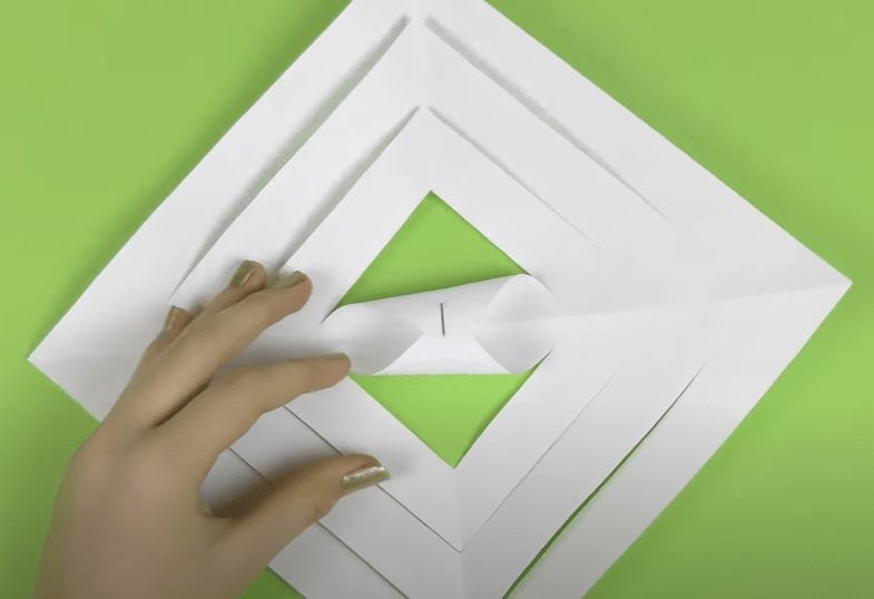 - Первый квадрат сворачиваем треугольником, затем соединяем два дальних угла.