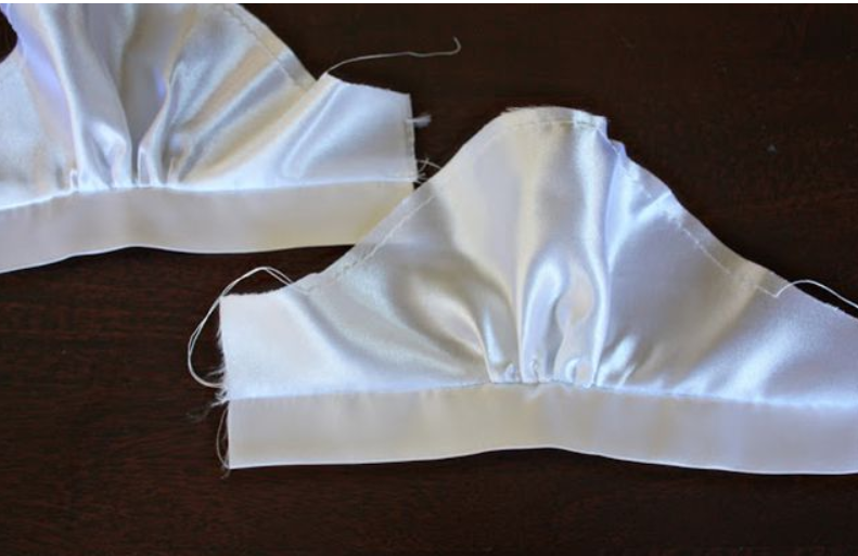 - В скругленных местах горловины делаем насечки ножницами. Сделать это нужно обязательно, чтобы после того, как вывернем обтачку наизнанку, горловина легла ровно.