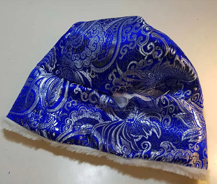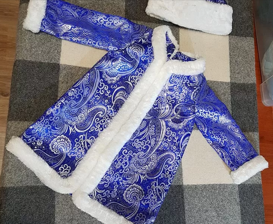 Красивый тулуп готов, теперь можно пошить к нему шапочку или сделать кокошник. Если шьете в первый раз, то лучше выбрать второй вариант, тем более что девочкам больше нравится именно кокошник, который можно украсить бусами, стразами, лентами и т. п.