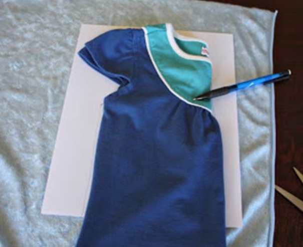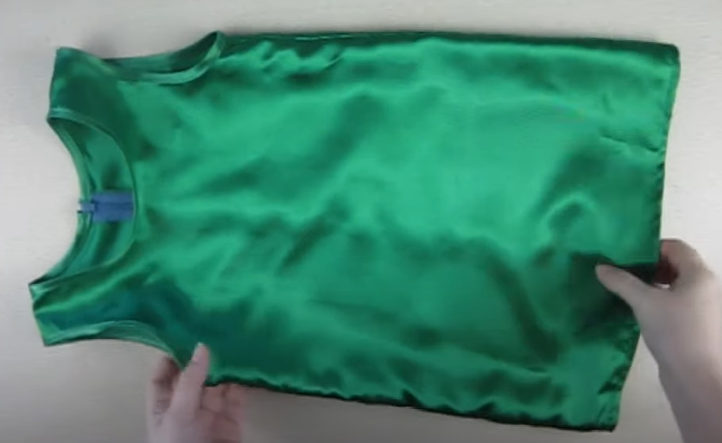 - Берем обычную майку, по которой будем делать выкройку для будущего костюма. Длину платья измеряем от плечевого шва, в нашем примере 0,55 см.