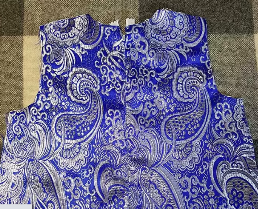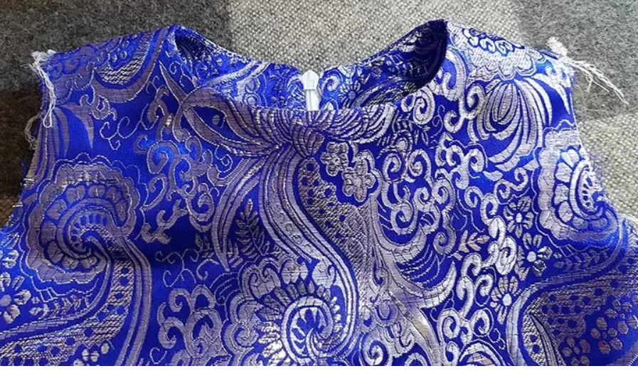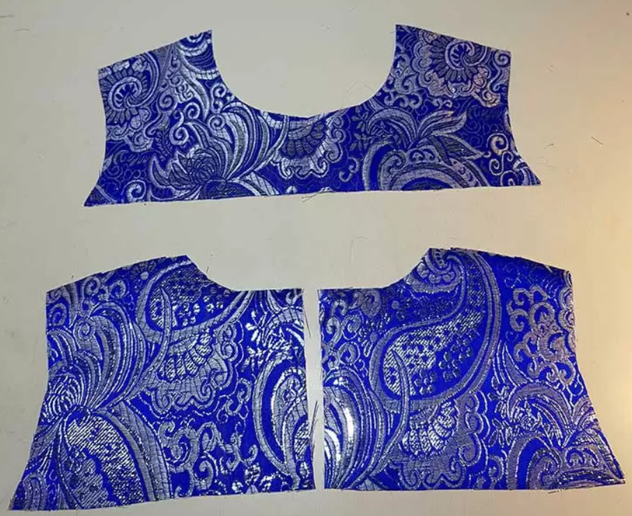- Для передней части выбираем красивую ткань. Это может быть парча, кружево, атлас и т. п.