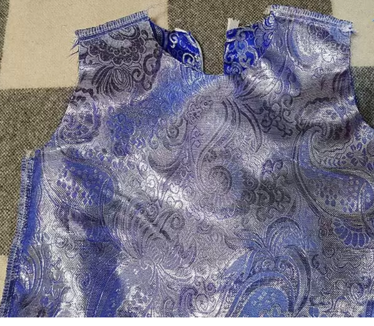 - Соединяем спинку платья с передней частью. Швы боковые и плечевые сметываем.