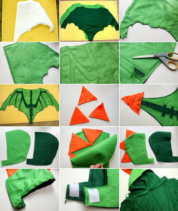 • На кончики крыльев с внутренней стороны прорезаем флисовый слой, чтобы сделать рукавички. Потрясающий костюм дракона готов.