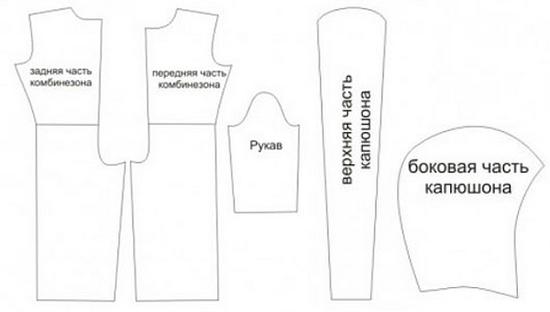 • Теперь выкладываем на бумаге капюшон от кофты и обводим его для создания выкройки. Вырезаем по две детали из темного и светлого материала.