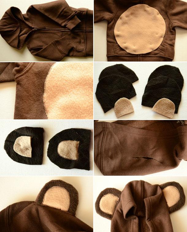 • кофта из флиса (или футера) коричневого цвета (подойдет кенгурушка, батник или толстовка на змейке, главное – чтобы в изделии был капюшон);