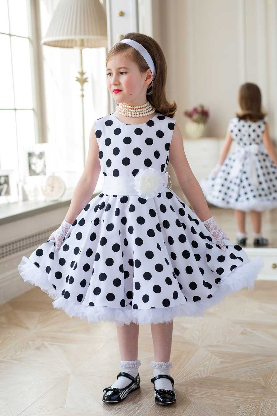 • Платья в стиле ретро. Характерными признаками подобных моделей считаются: красочные элементы (преимущественно алого цвета), большой или маленький горох. Также это может быть юбка-солнце, изящные перчатки, бросающиеся в глаза колготки и бант в прическе. Такая юная стиляга стопроцентно не окажется незамеченной.