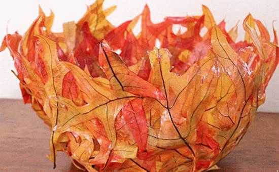 Очень просто изготавливается эффектная поделка в школу для конкурса на тему «осень» из природного материала – красочных листьев (фото).