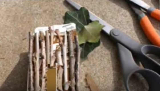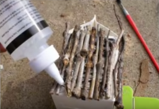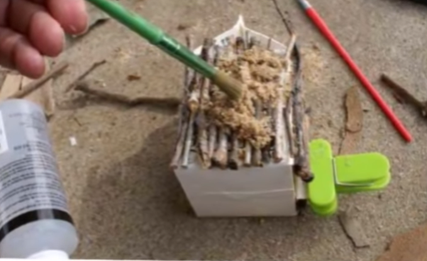 •          Для оформления стен нарезаем веточки и палочки одинакового размера. На тех стенах, где будет окно или дверь подбираем палочки соответствующего размера. При помощи клея оформляем стены, качественно их промазывая клеем.