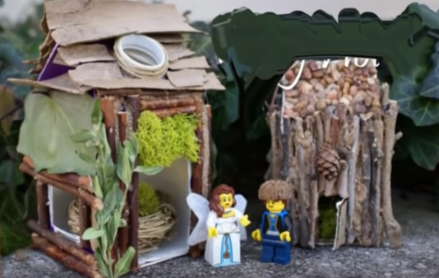 •          Домик дополнительно можно украсить мхом, листьями и зелеными веточками. Такие домики можно изготавливать в очень большом разнообразии вариантов, используя шляпки от желудей, мелкие камешки и т. д. Поле для приложения фантазии в данных поделках просто безгранично.