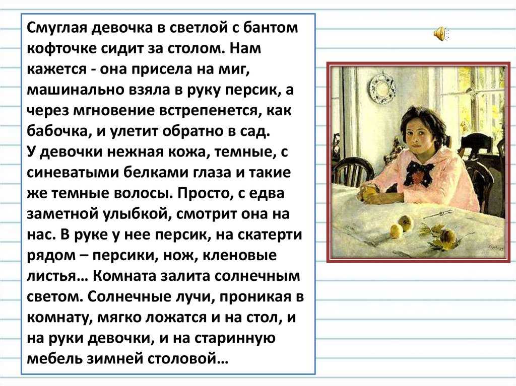 Сочинение по картине Серова Девочка с персиками: описание для 3,4,5,6,7 классов