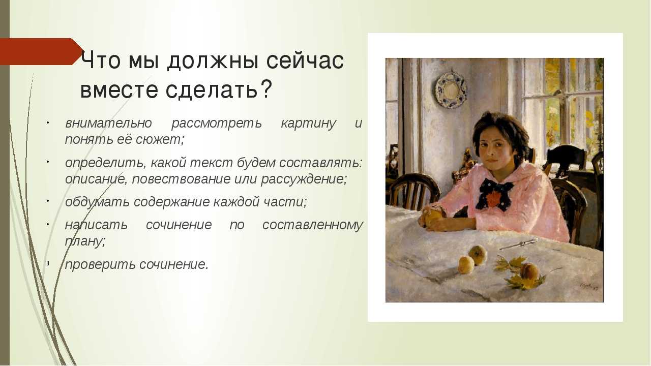 Пример сочинения по картине «Девочка с персиками» для 7, 8 класса: