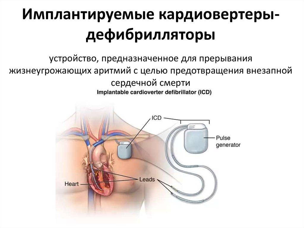 Сейчас активно разрабатываются и внедряются имплантируемые кардиовертеры – аппараты, которые определяют, что у человека начался приступ мерцательной аритмии, и прекращают его.