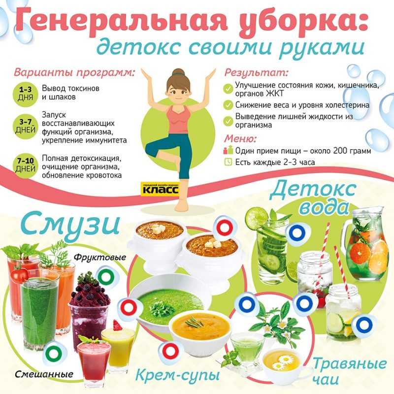 Рассчитаны детокс программы для очищения организма в домашних условиях на 3 дня, есть диеты на неделю, на 10 дней, на месяц. Это правильно, чтобы каждый человек, приступающий к очищению, мог рассчитывать свои силы и возможности.