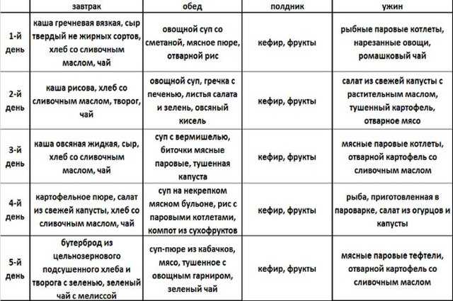 Приведенное далее меню подойдет для подростков и взрослых людей, если у них наблюдается неосложненная болезнь с относительно хорошей переносимостью продуктов. Ниже — примерная диета по дням.