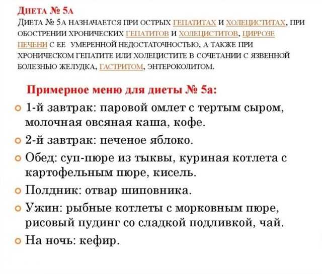 Диета, назначаемая в первые 5 дней при холецистите, носит название 5В. Приблизительно через 10 дней после диагностирования воспаления желчного пузыря больного переводят на стол № 5А. Ее необходимо придерживаться на протяжении двух недель.