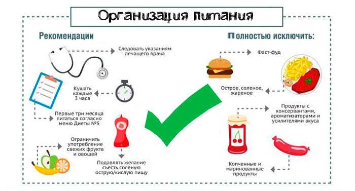 Она подбирается в соответствии с принципами здорового питания и может несколько отличаться, в зависимости от выраженности симптомов у больного. Обычно в первые дни они проявляются наиболее ярко. Поэтому в указанный период следует соблюдать сдержанность в питании и отдавать предпочтение диетическим продуктам, соответствующим столу № 5.