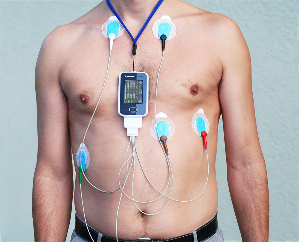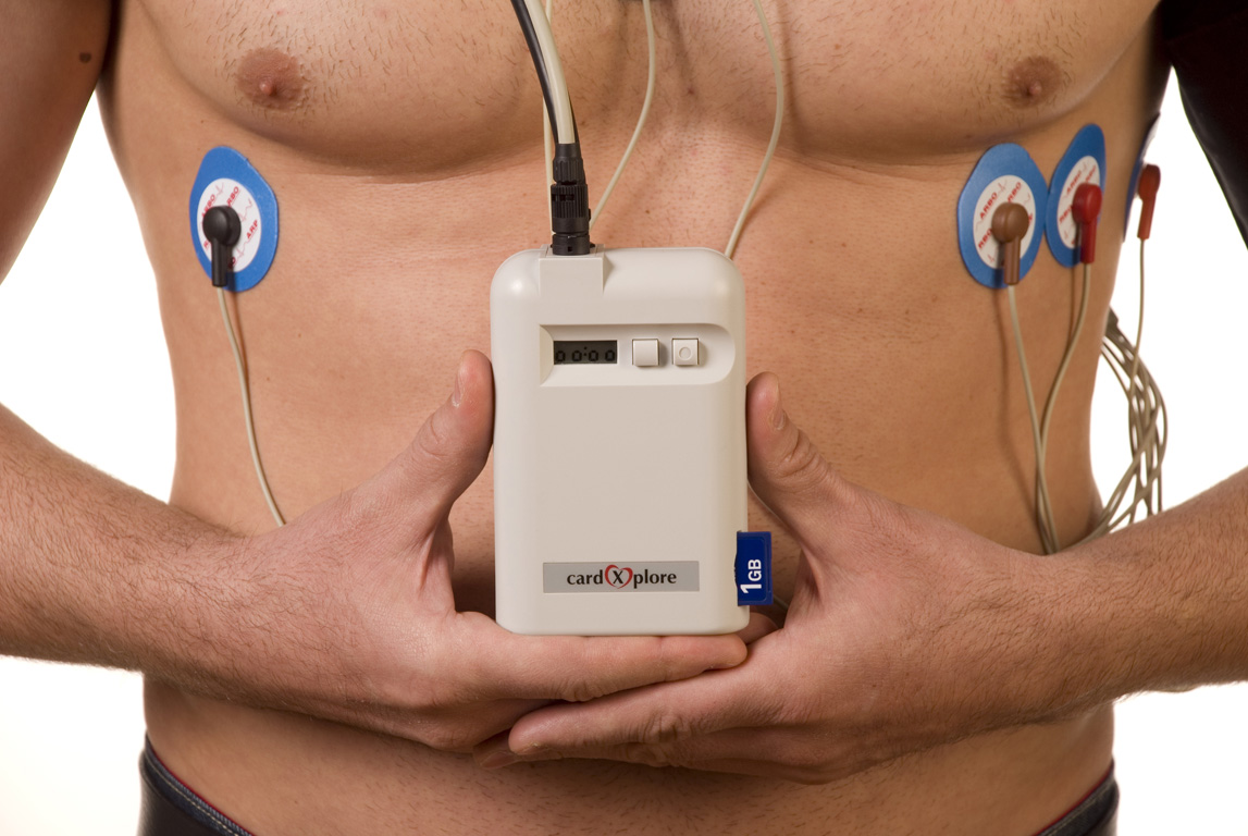 Суточный мониторинг по методу Холтера относится к важным диагностическим процедурам. Датчики, закрепляемые на теле пациента, записывают на компьютере электрическую сердечную активность в течение суток. Для этого все провода от датчиков присоединены к портативному устройству, которое пациент носит при себе все время обследования.