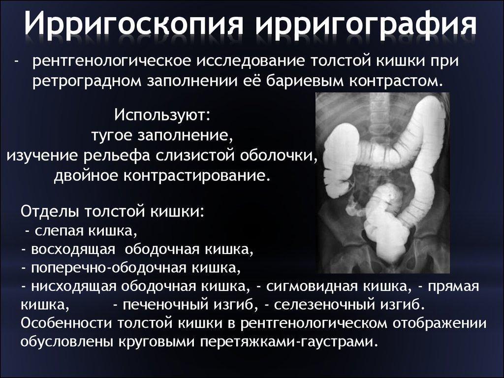 Ирригоскопия кишечника современный распространенный метод диагностики кишечных патологий, позволяющий без особенных сложностей и неудобств для пациента, получить представление о характере нарушений, присутствующих в толстом кишечнике.