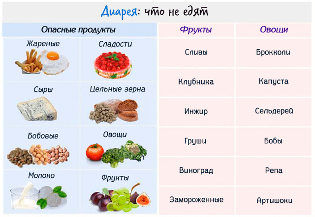 Если у человека развилась диарея, на протяжении первых суток он не должен употреблять никакой еды. Допускается только вода.