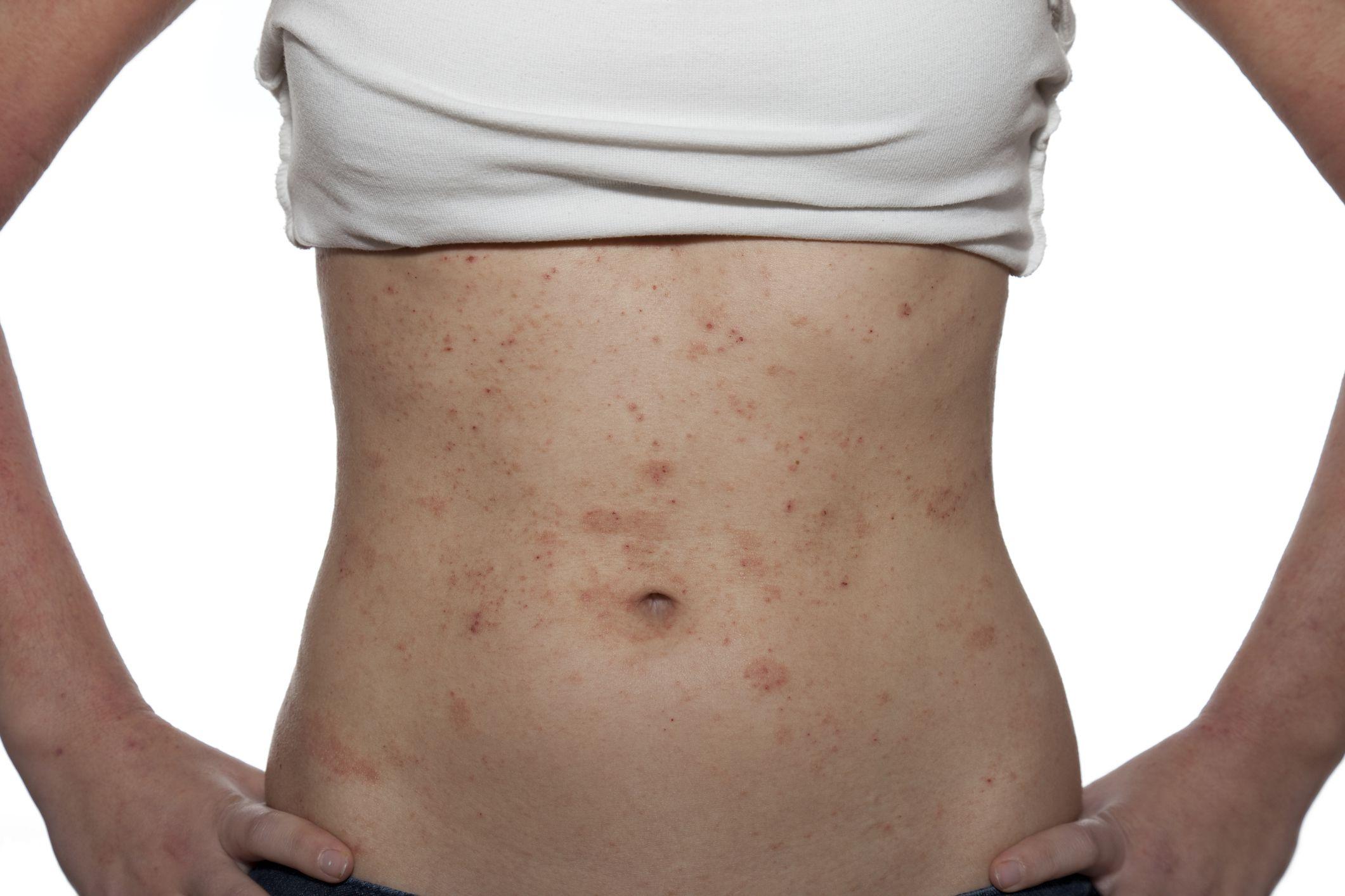 К основным его симптомам можно отнести красные пятна, которые выступают над поверхностью кожи. На них образуются серые чешуйки. При обострении пациент может жаловаться на приступы зуда и общее ухудшение самочувствия.