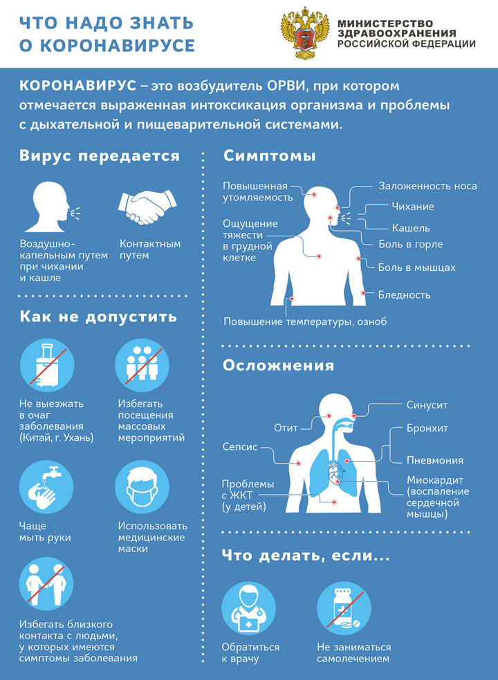 • Правительством страны предприняты меры по недопущению потока зараженных на территорию России. Для этого приостановлено авиасообщение со многими странами.