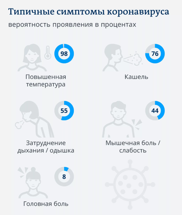 Все пациенты чувствуют себя хорошо. У двоих даже не было высокой температуры, которая, напомним, – один из симптомов заболевания, которая практически ничем не сбивается. Среди других симптомов выделяют следующие: