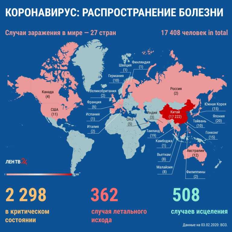 Смертоносный вирус получил распространение уже в 26 странах мира, общее число зараженных за пределами Китая выявлено в 182 случаях.