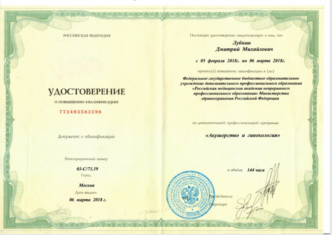 Лубнин Дмитрий Михайлович, врач акушер-гинеколог