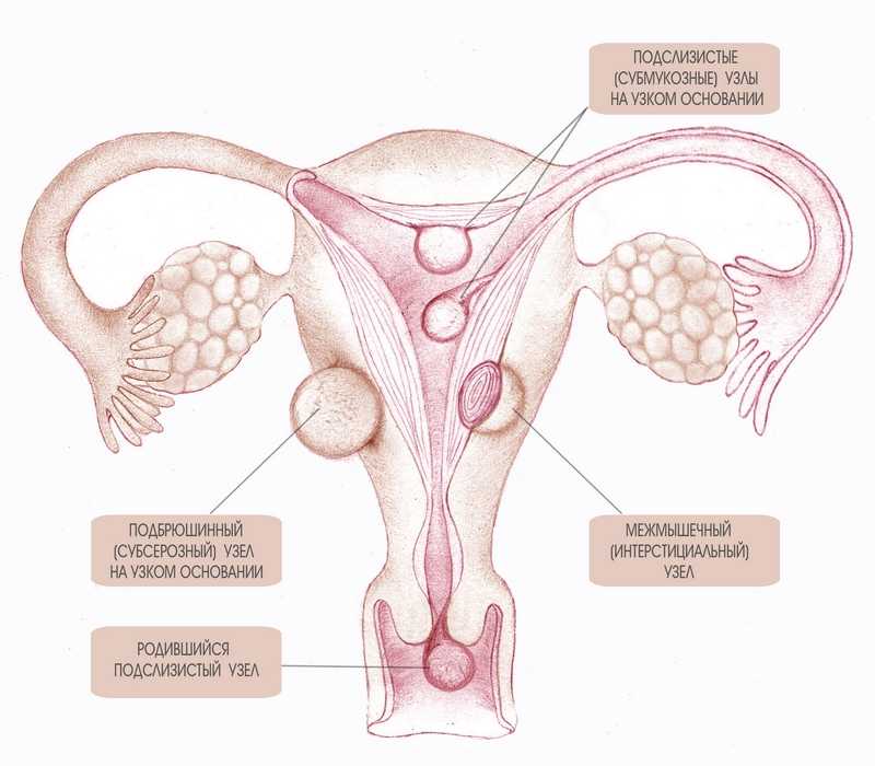 Узлы миомы матки бывают единичными и множественными, их размер может колебаться от нескольких миллиметров до десятков сантиметров. По локализации различают:
