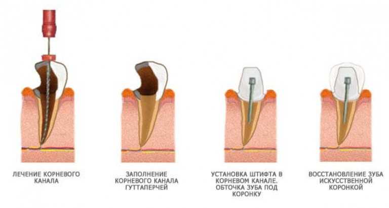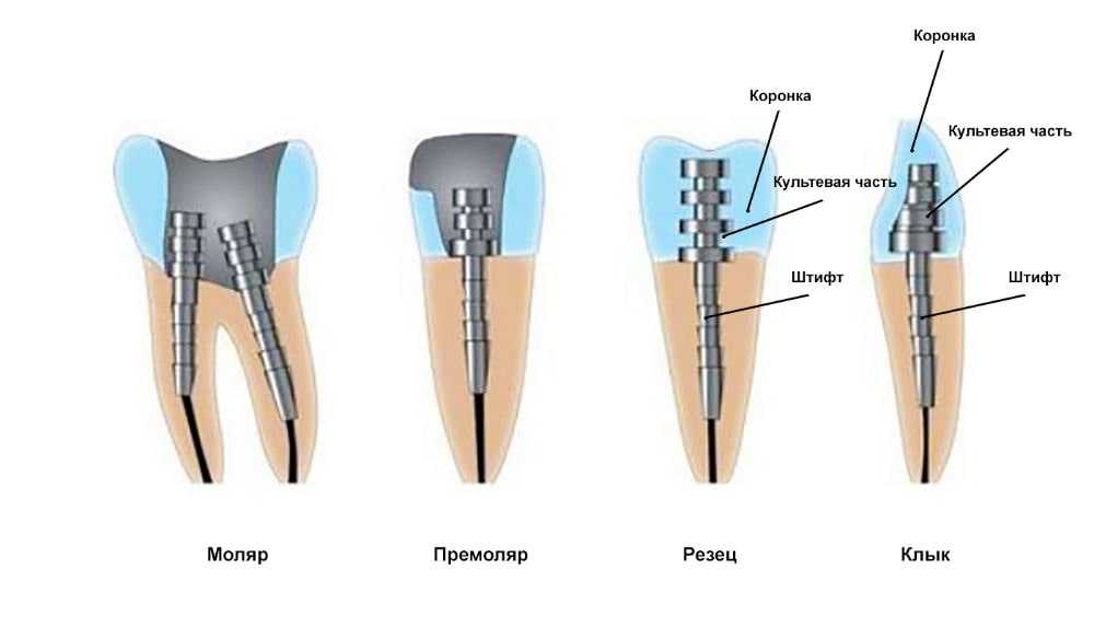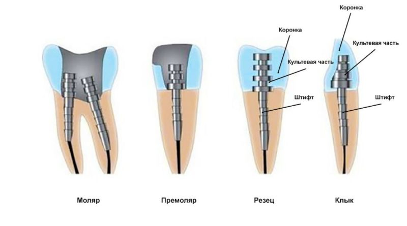 При значительном разрушении зуба рекомендуется устанавливать штифты, так как пломбу зафиксировать будет сложно. Зубной штифт является металлическим стержнем, который вкручивается в корень канала. Для изготовления штифтов применяются разные материалы: