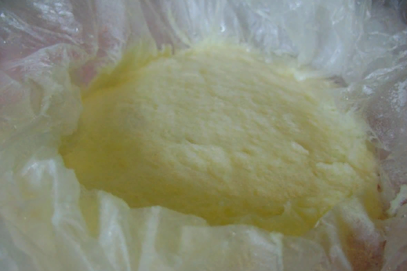 • Взбитые яйца с молоком перелить в два пакета, вложенных один в другой. Так же можно использовать и пищевую пленку для приготовления этого блюда.