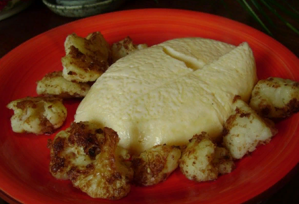 • Достать омлет из пакета, переложить на тарелку, добавить цветную капусту и можно украсить блюдо веточкой зелени, прежде чем подавать к столу.