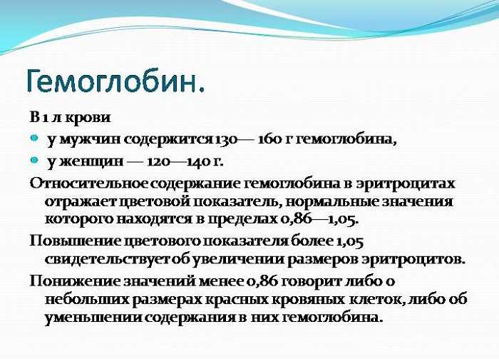 В период вынашивания ребенка эти цифры несколько снижаются и достигают показателей 105-120 г/л. Это объясняется тем, что во время беременности организм активно расходует железо, которое поступает с пищей.