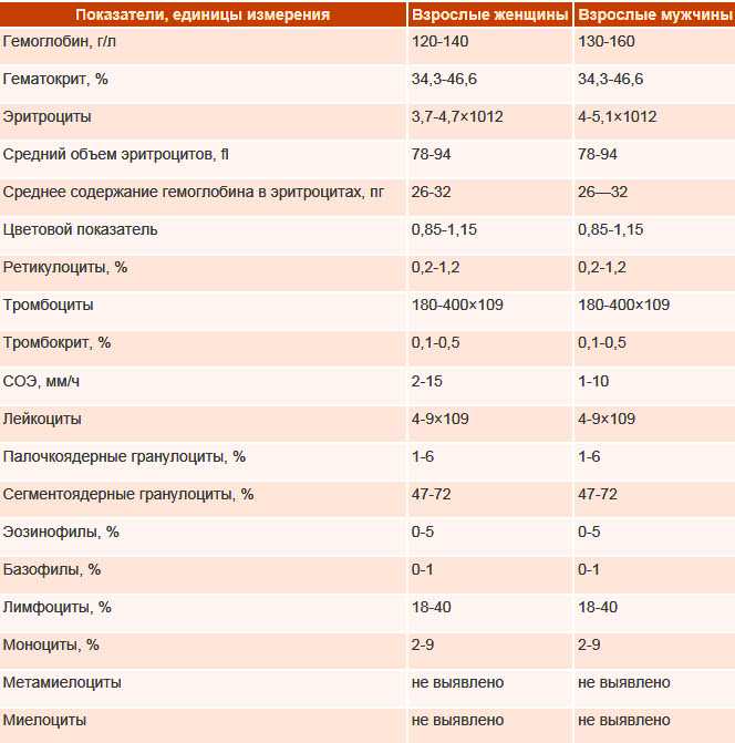 Общий анализ крови: расшифровка у взрослых (норма в таблице)