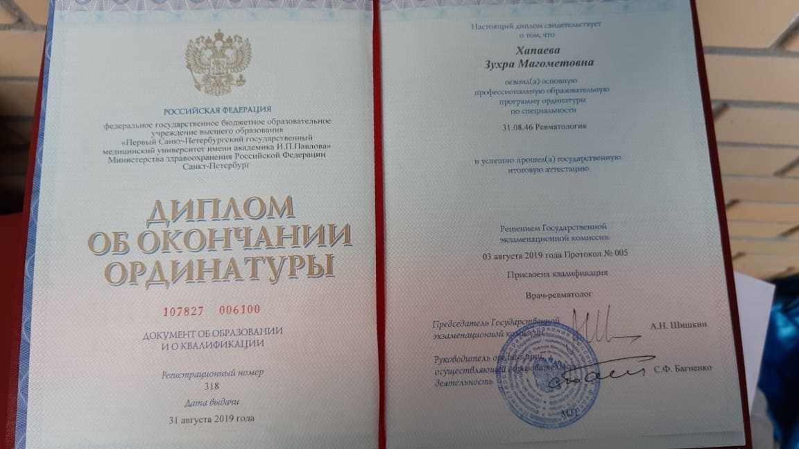 Ординатура: Медицинское училище при СПбГМУ им. акад. И.П. Павлова (ревматология).
