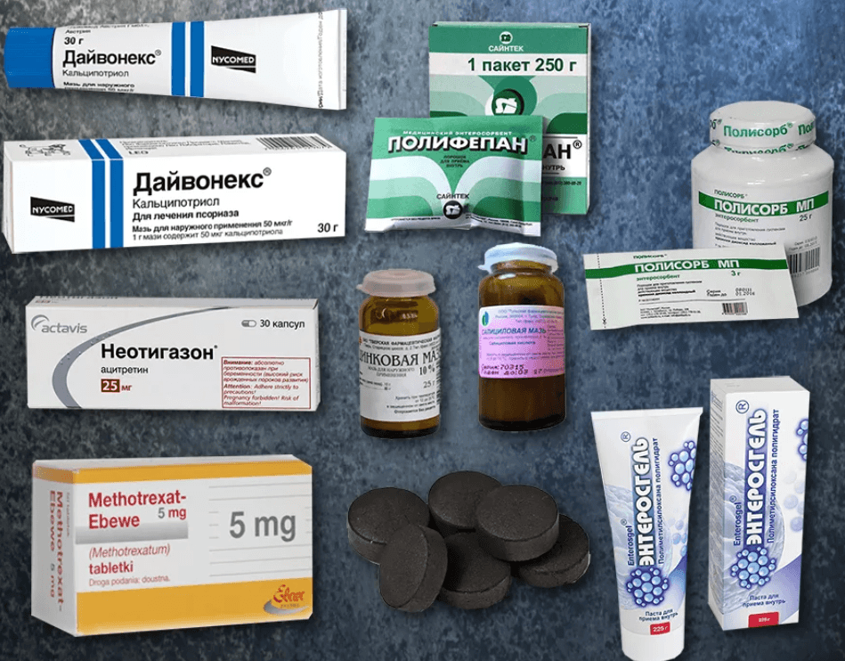 Медикаменты других групп могут применяться для лечения псориаза. Психосоматика, указывая на причины и пути лечения у взрослых, подразумевает использование сопутствующих препаратов. Они уменьшают симптомы болезни, одновременно воздействуя на провоцирующие причины.