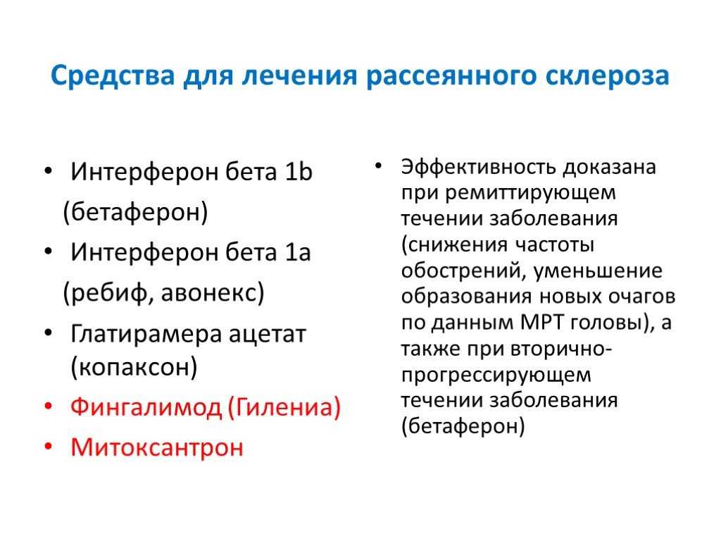 Клинически доказано, что эти лекарственные средства помогают предупреждать и лечить тяжелые стадии РС.
