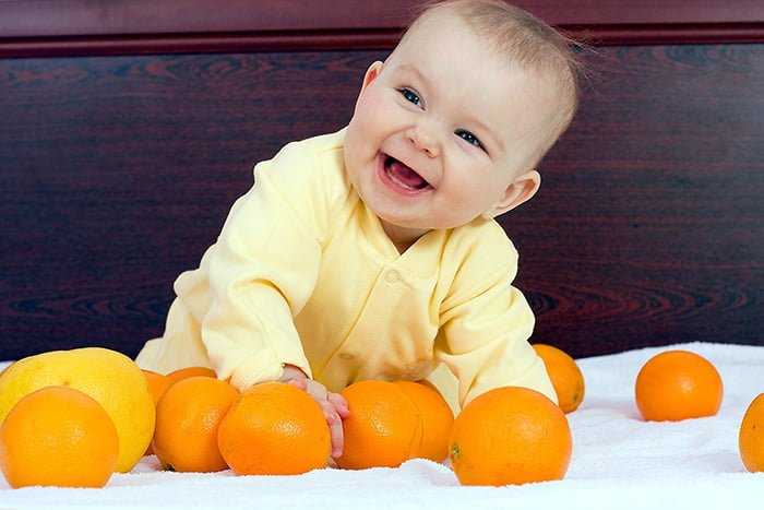 Если рост грудничка происходит без аллергических реакций на продукты, тогда не запрещено провести небольшой эксперимент. Для того чтобы первый раз дать попробовать ребенку мандарин, его возраст должен быть не меньше 9 месяцев.