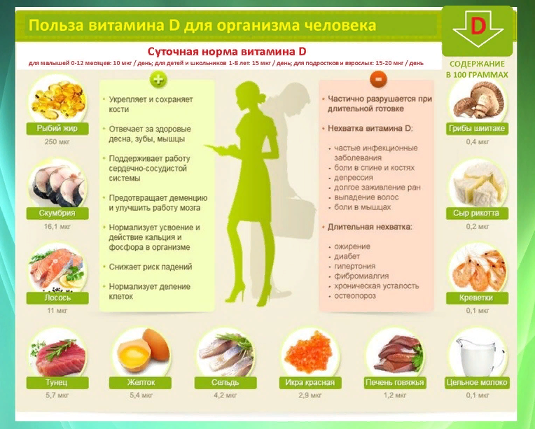 Что говорит о том, что не стоит подсчитывать количество употребленного витамина D. Достаточно просто регулярно употреблять вышеперечисленные продукты и осуществлять ежедневные прогулки в дневное время суток.