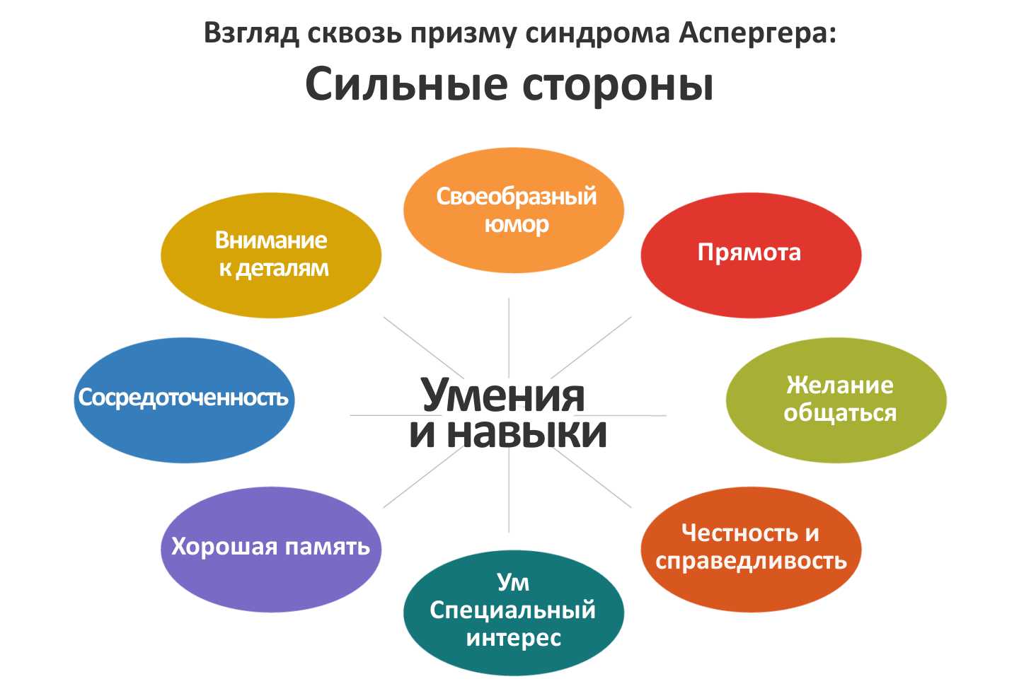 В отличие от симптомов классического аутизма синдром Аспергера вызывает меньшие речевые затруднения, человек с таким заболеванием к взрослому возрасту имеет интеллект среднего уровня.