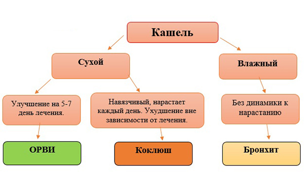 Первый вид отличается повышенной выработкой слизи, а последний возникает в основном в самом начале респираторного заболевания.