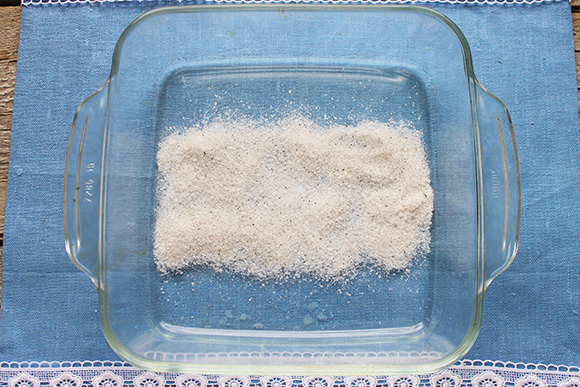 На дно ёмкости насыпьте половину оставшейся смеси.