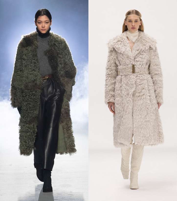 После громкого появления пальто-халатов настал черед и шуб. Этот вид верхней одежды, дополненный поясом и лежачим отложным воротником, займет одну из лидирующих позиций зимой 2022-2023 годов. Дизайнеры уже предлагают широкий ассортимент, включающий изделия и из натурального меха, с анималистичными и пестрыми принтами.